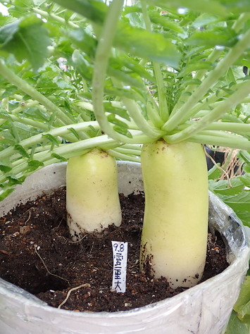 7本目の大根を収穫です! 鉢植え栽培ですが直径7cm弱で形良く仕上がった 嬉しい収穫ができ満足です 「宮重総太り大根」 9/8に種蒔きでした 写真をク···