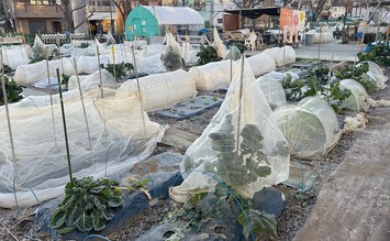ウォーキングコースにある民間の貸し畑! トンネルが設置されていてすっかり 真冬の防寒スタイルになっていますね 写真をクリックすると拡大します! ···