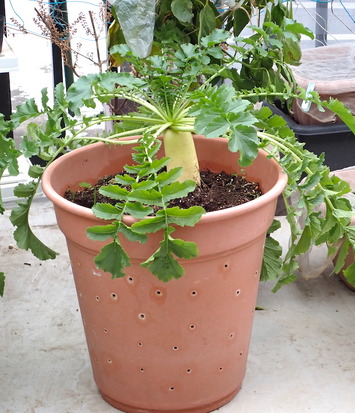 っっk今季3本目の大根収穫です! この鉢に9月1日に種蒔きして 3本栽培してきました 3本目はやや細身に 仕上がりましたが家庭菜園では十分な大きさ···